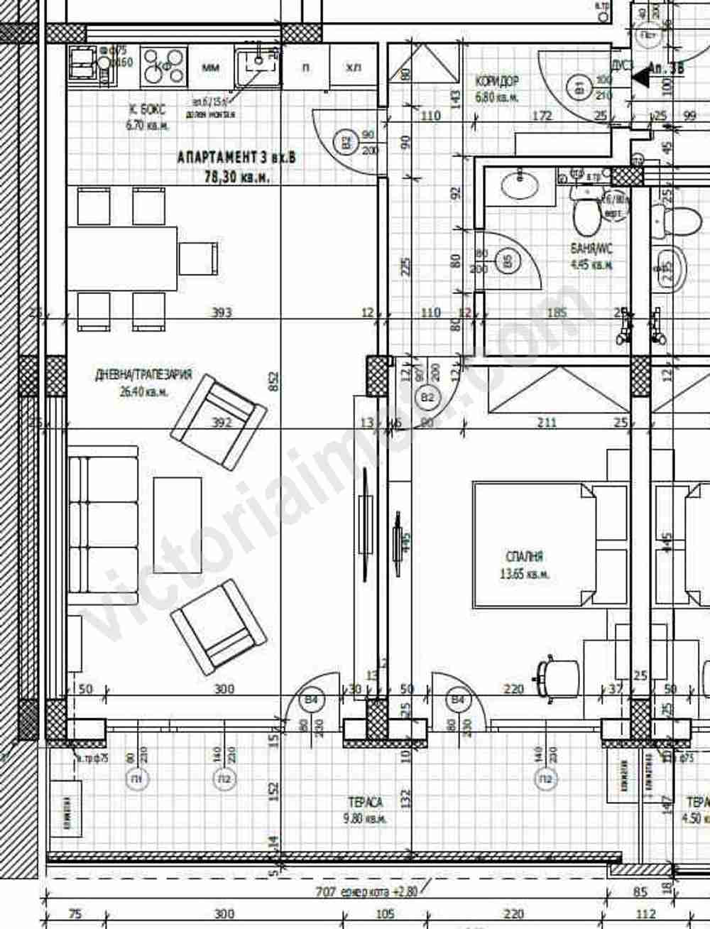 Чиста жилищна площ: 78.30 кв.м.