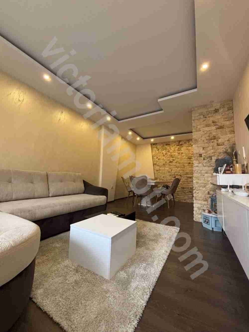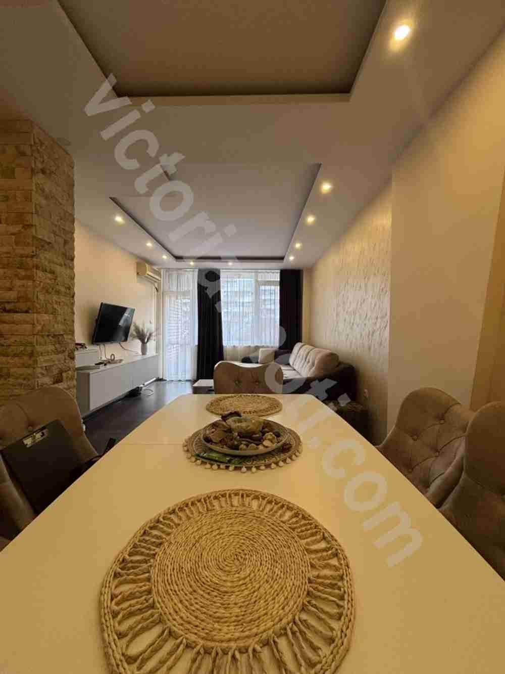 Описание: Екипът на Виктория Имоти предлага на своите клиенти чудесно предложение за ремонтирано двустайно жилище в кв. Колю Фичето, а именно в частта му около училище Емилиян Станев. Имотът е разположен на междинен етаж в тухлена сграда старо строителство, и площта му от 67 кв.м. е функцинално разпределена между голям хол, южни спалня и кухня, просторен коридор с възможност за поставяне на големи гардероби, баня и отделна тоалетна. Извън посочената квадратура имотът разполага с две тераси, една от които остъклена. Изложението е юг/север. Предлага се частично обзаведено, и най-важното - след тотален ремонт, който включва цялостна подмяна на подови настилки, дограми, изолация на цялото жилище, интересни дизайнерски решения и др. Имотът разполага и с избено помещение.