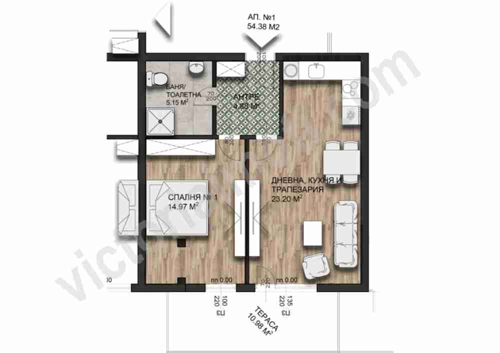 Описание: Екипът на Виктория Имоти има удоволствието да предложи едно уникално и нестандартно предложение за продажба на жилище до Велико Търново. Сградата се намира в китно селце само на 2 км от града, в новопостроена сграда, която ще се откроява от всички останали в района поради допълнителните удобства, изградени за живущите. На първо място - двор. Липсата на зелени площи е един прогресиращ проблем през последните години около жилищните блокове. Тук освен тази зелена пространственост, на разположение на живущите ще има барбекю и кът са събиране и отдих. И сега основният акцент на сградата - спа център на партерно ниво, който ще включва вътрешен басейн, масажно студио, фитнес, рецепция, фреш бар и съблекални. Живущите ще разполагат със собствен достъп до спа центъра, който ще се ползва срещу месечен абонамент, а външните посетители ще ползват друг вход, за да не нарушават спокойствието и високото ниво на сигурност в сградата. Относно самата сграда - тя в момента е на акт 14 (груб строеж), като текат довършителните дейности по нея. Материалите, които ще се вложат в нея ще бъдат безкомпромисни откъм качество, а именно - алуминиева дограма с троен стъклопакет, прекъснат термомост, цвят - антрацит. Общите части ще се изпълнят с гранит и мрамор, а фасадата ще се завърши с външна изолация 12 см EPS - черна серия на Austroterm и Baumit. Въпреки ниската етажност, сградата ще разполага със асансьор.